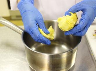 鍋に入れ、火にかけ潰しながら煮詰める。