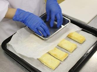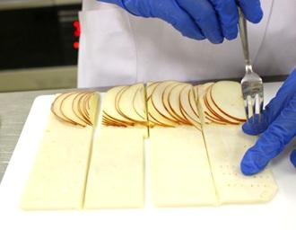 フォークでピケをし、粉チーズをりんごの上にまく。