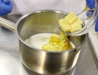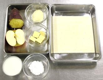 焼いもは皮を除いて牛乳、ホワイトチョコとともに