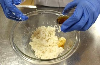 すりおろしたれんこんをボウルに入れ片栗粉、めんつゆ、
