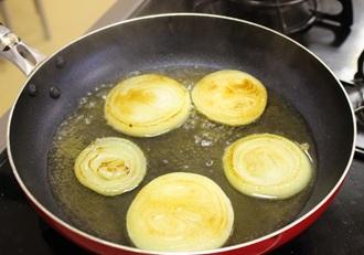 フライパンにサラダ油をひき、玉ねぎがきつね色になるまで