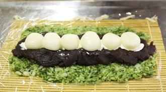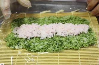 全体を巻き寿司の形に仕上げることで、見た目の意外性