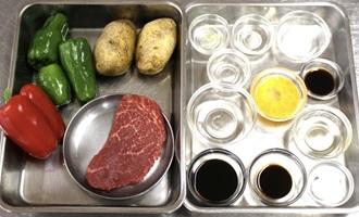 牛肉の色が変われば、新じゃがいも、ピーマン、パプリカ