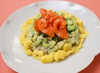 をのせ、サーモンフラワーを中心にのせて完成です。