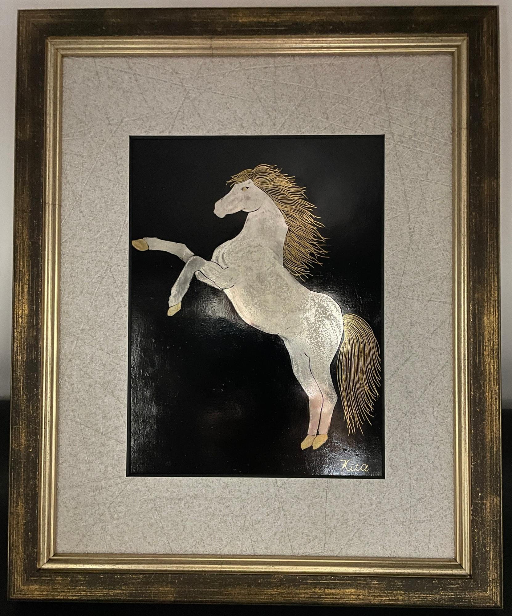 地金に純金、純銀を打ち込み漆仕上げ。 象嵌 額 うま 326,700円 (サイズ 34×27㎝)