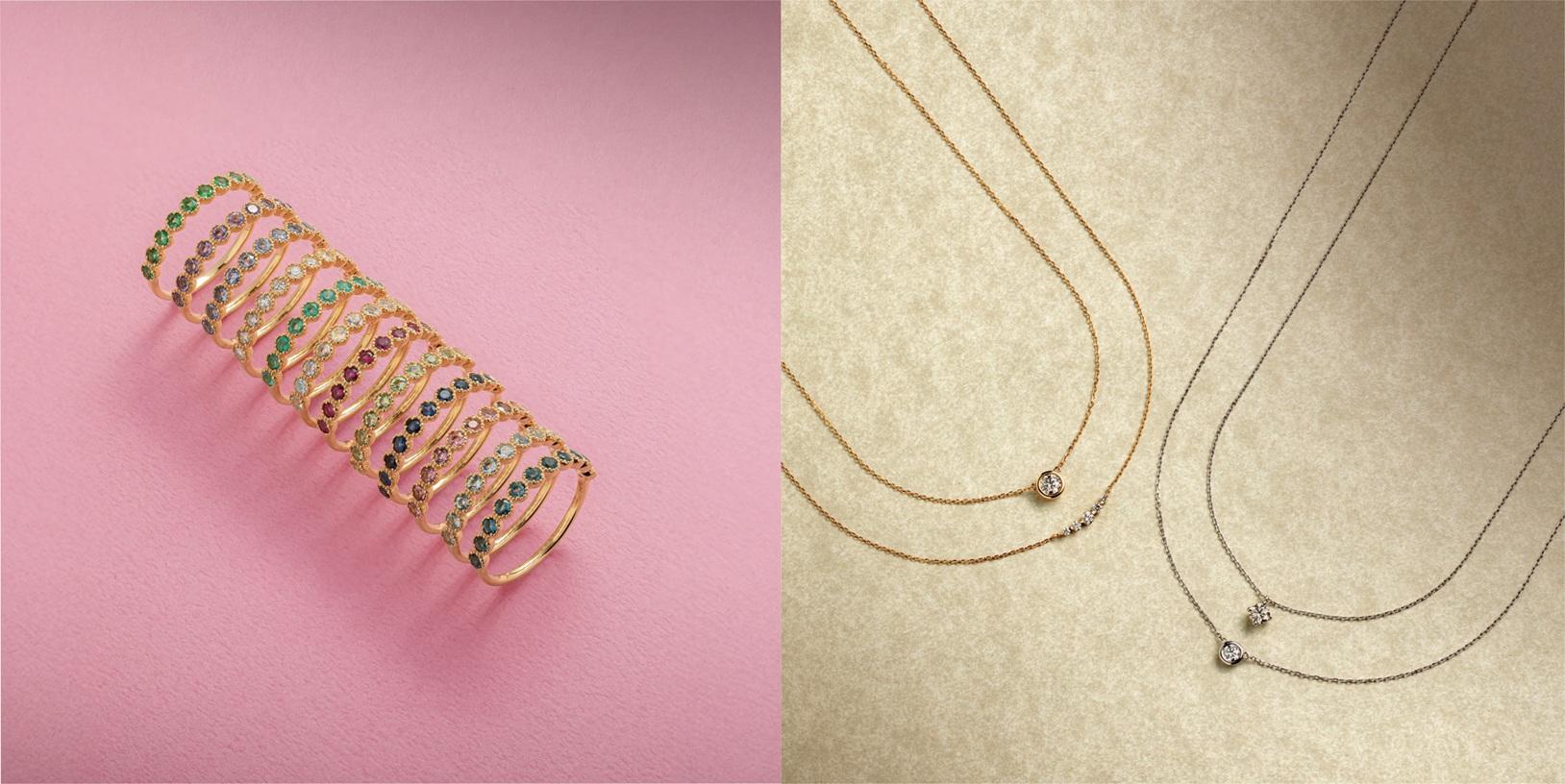 こだわりの誕生石の K18ハーフエタニティリング。