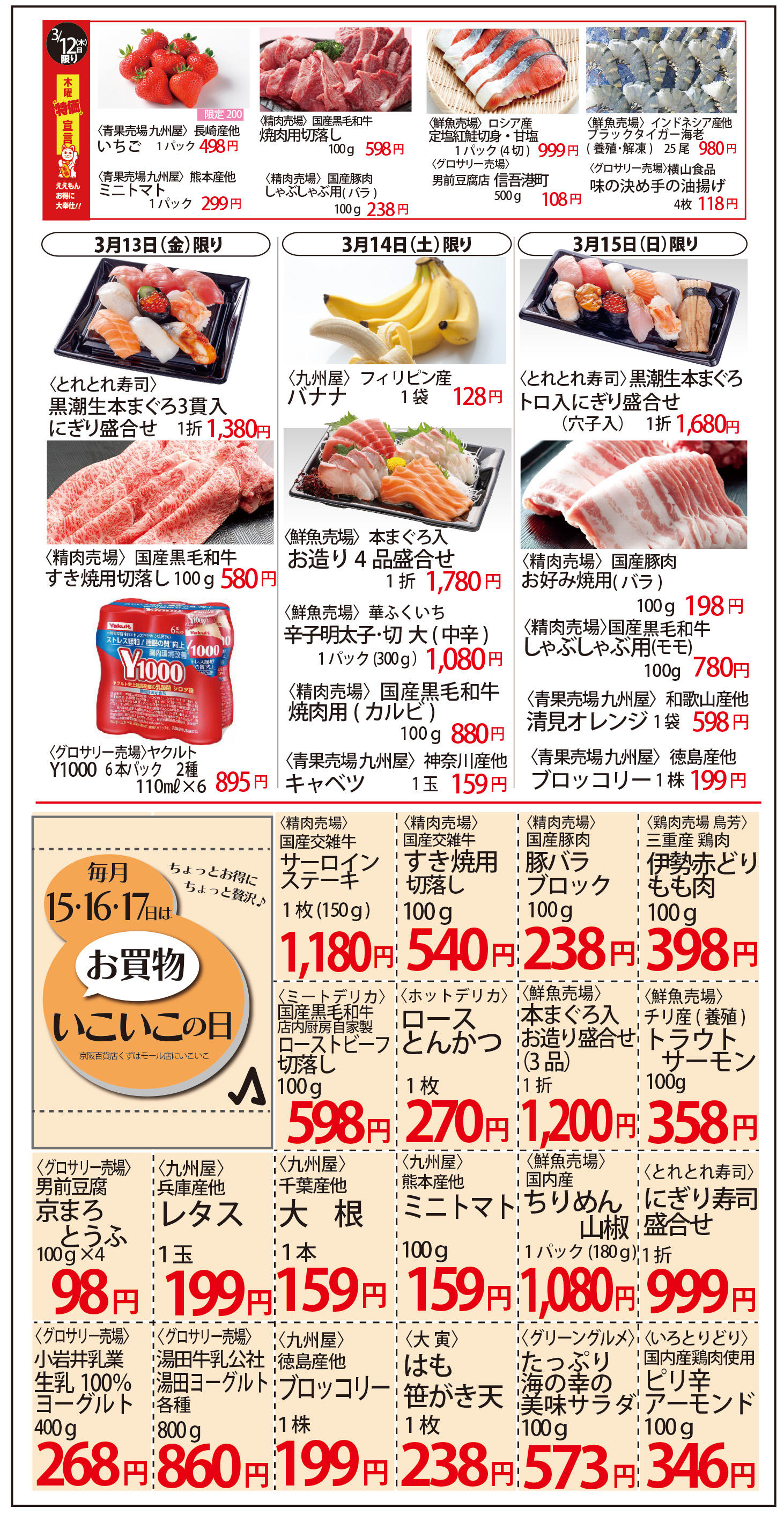 3/12(木)~木曜特価宣言&日替りご奉仕といこいこの日
