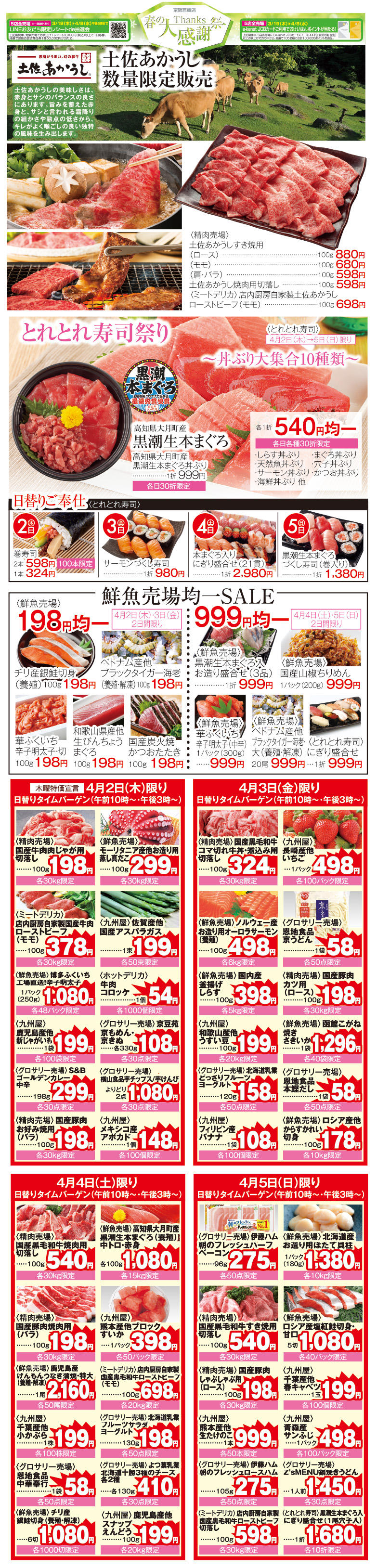 春の大感謝祭、いよいよラスト第3弾!土佐あかうしの限定販売やとれとれ寿司のどんぶり大集合などお楽しみ盛りだくさんです♪春の味を楽しんでください
