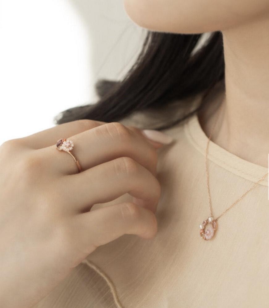 石:ピンクトルマリン、ピンクシェル、キュービックジルコニア、レモンクォーツ、淡水パール