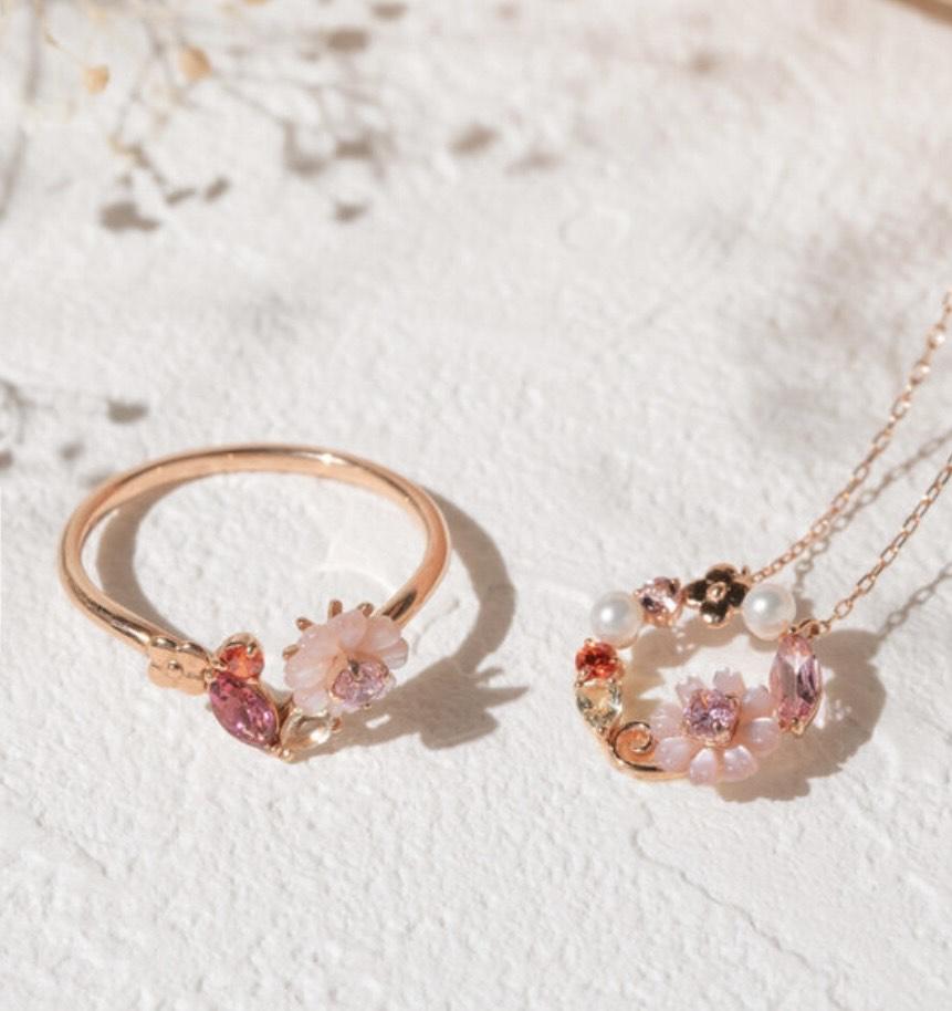 石:ピンクトルマリン、ピンクシェル、キュービックジルコニア、レモンクォーツ、淡水パール