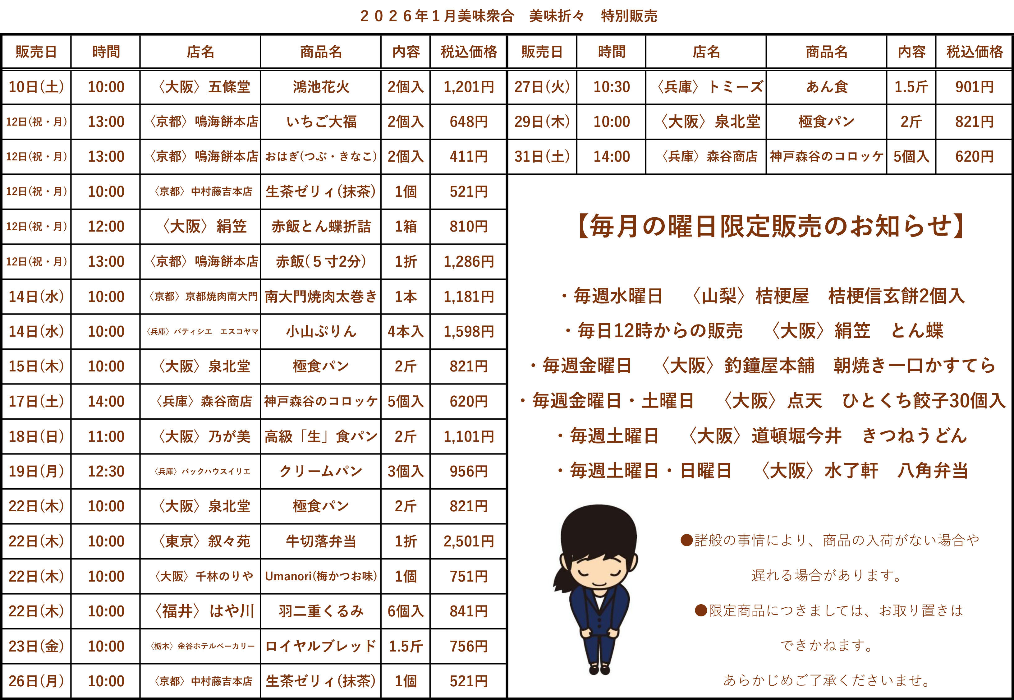 ●いずれの商品も数に限りがございます。売り切れの際はご容赦くださいませ。