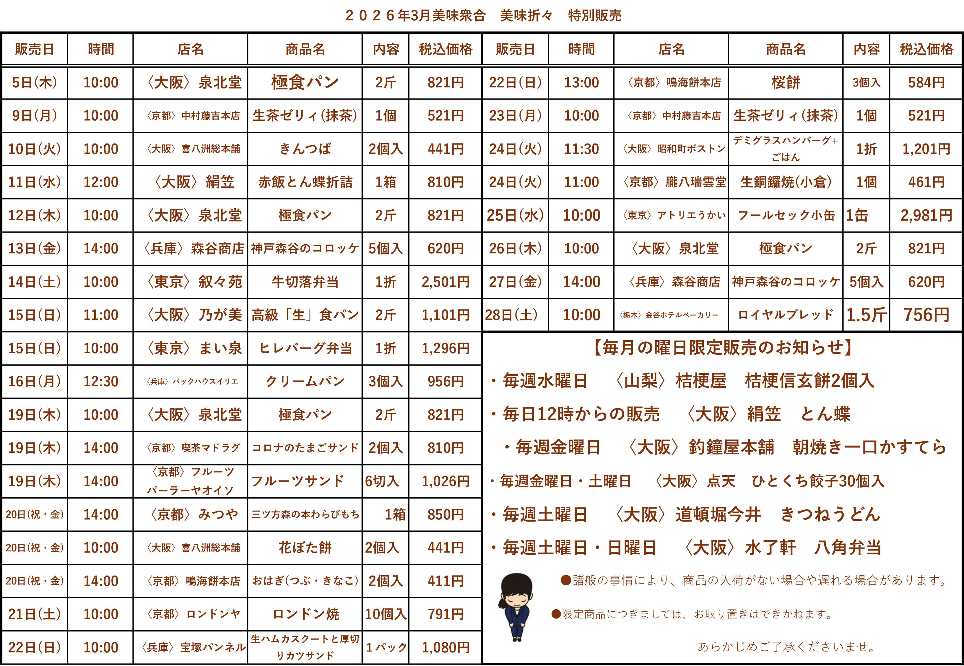 ●いずれの商品も数に限りがございます。売り切れの際はご容赦くださいませ。