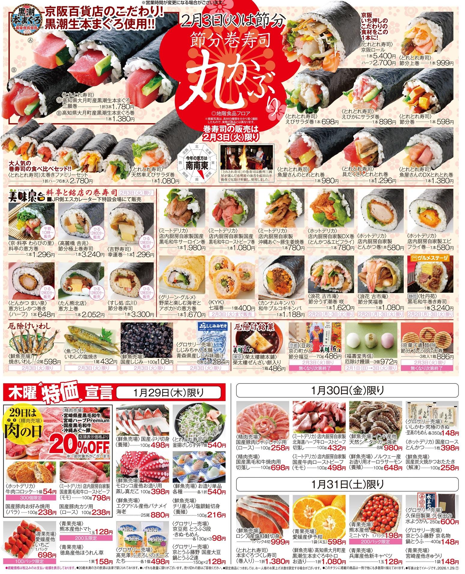 2月3日(火)は『節分の日』です。今年も種類盛りだくさんに恵方巻を取り揃えました。京阪の恵方巻を食べて良い1年にしてください♪