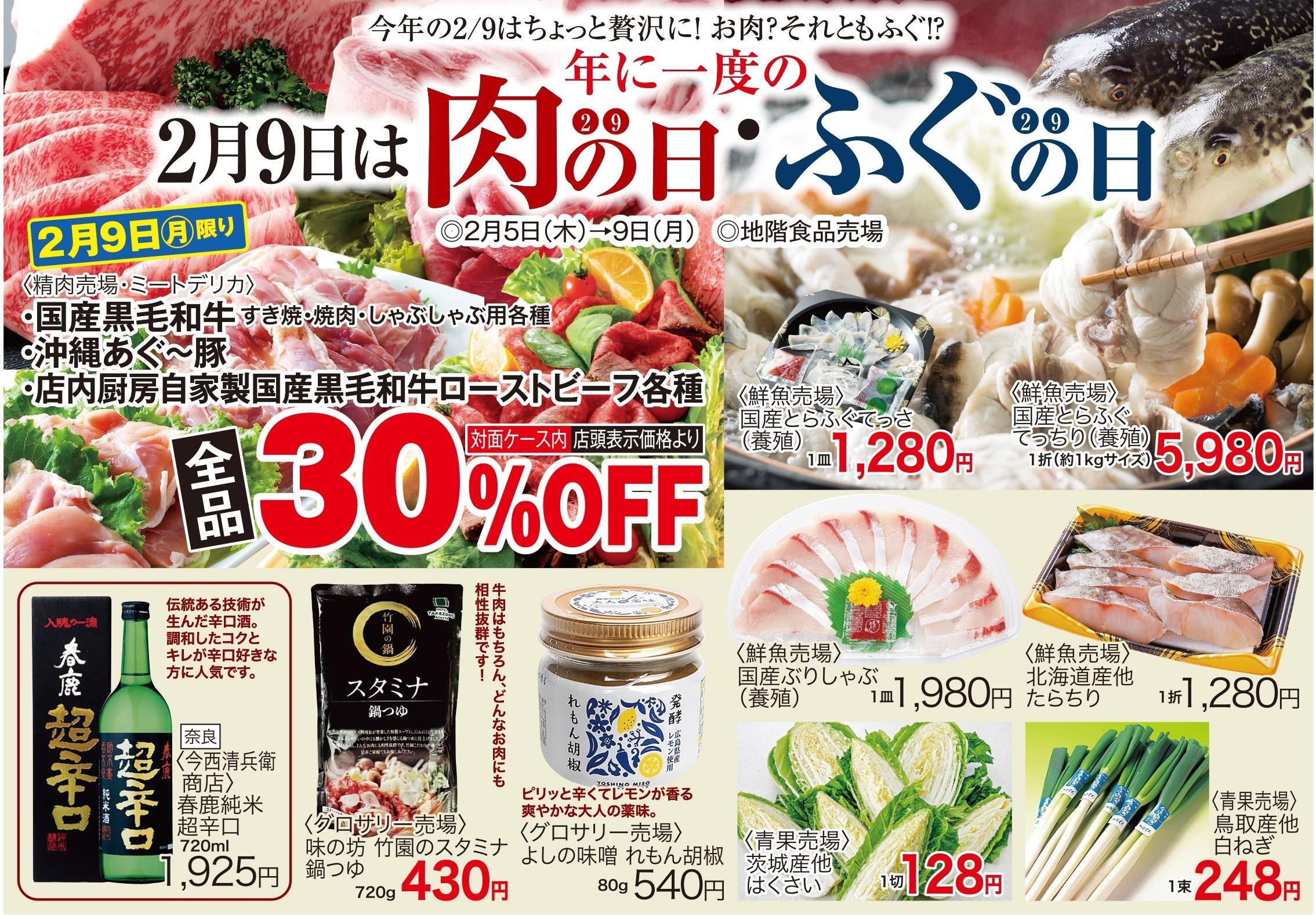 2月9日(月)限定で対面ケース内店頭表示価格より3割引きセールを行います。