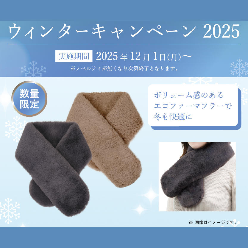 - 期間中、ちふれグループ商品を税込10,000円以上お買い上げのお客様に、ロングエコファーマフラーをプレゼント。どちらか1色お選びいただけます。