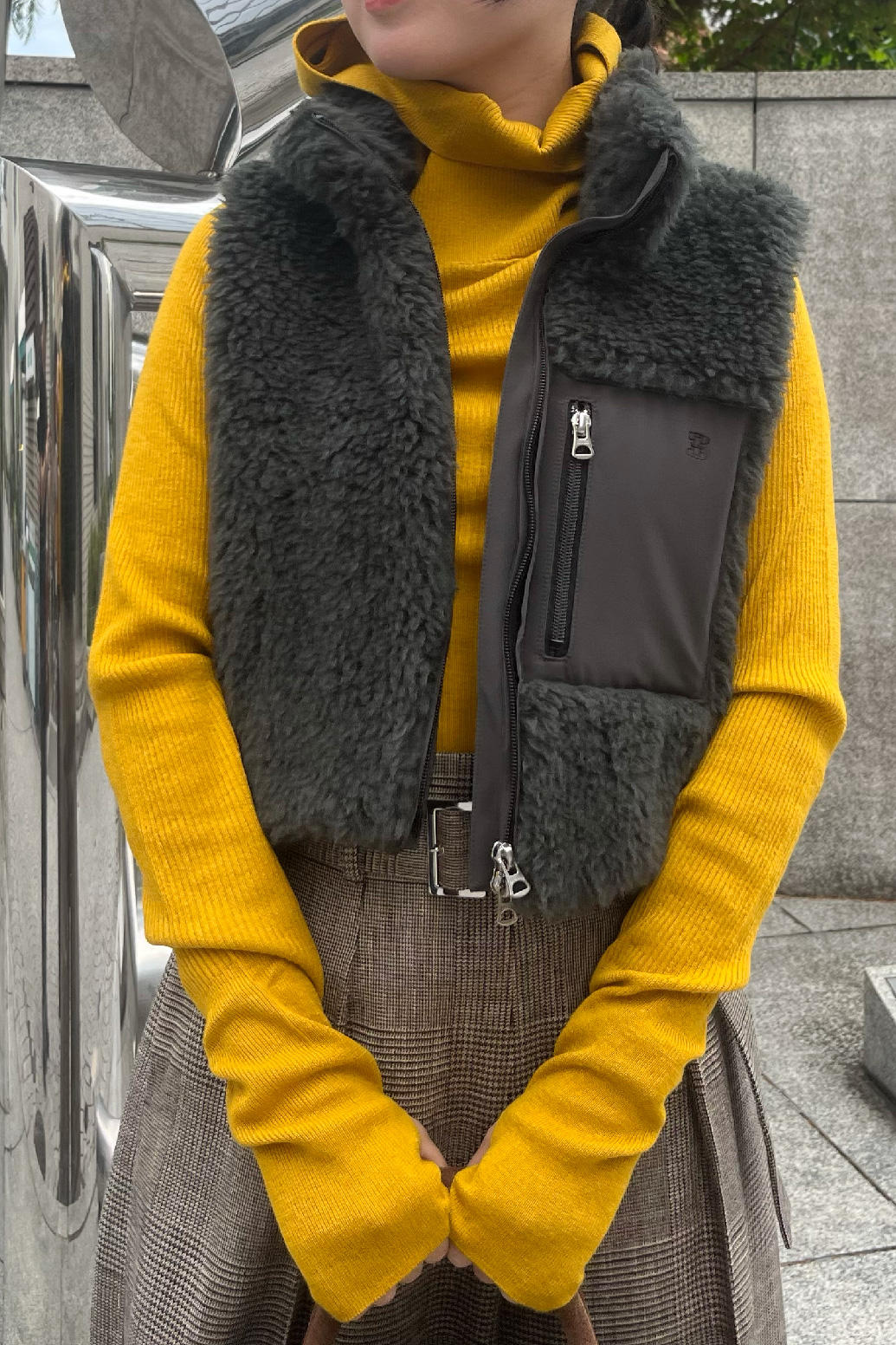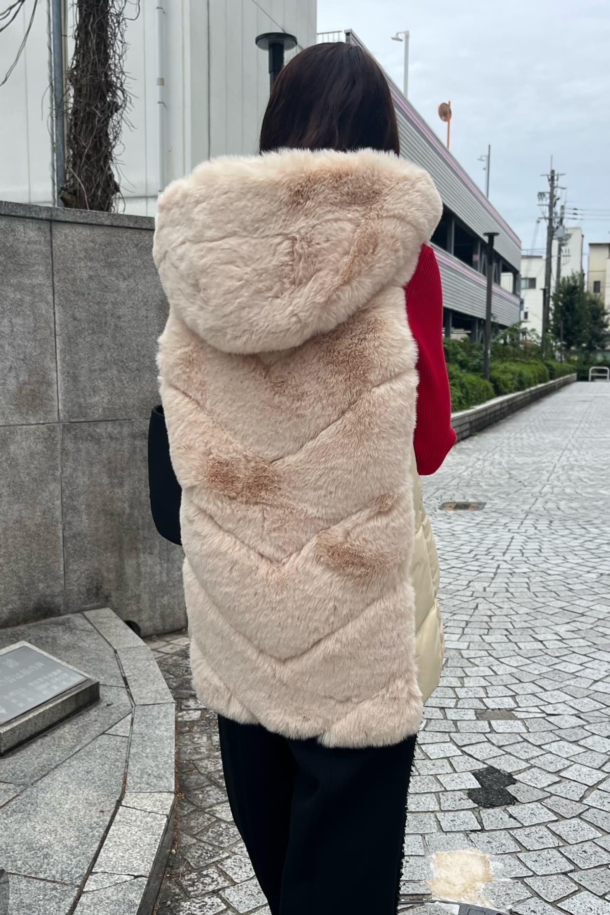 - インポートブランド、リナシメント(イタリアブランド)のファーベストは異素材ドッキングベストで軽くて暖かいポリエステルを使用しております。色違いで黒もございます。※販売期間:9月末~