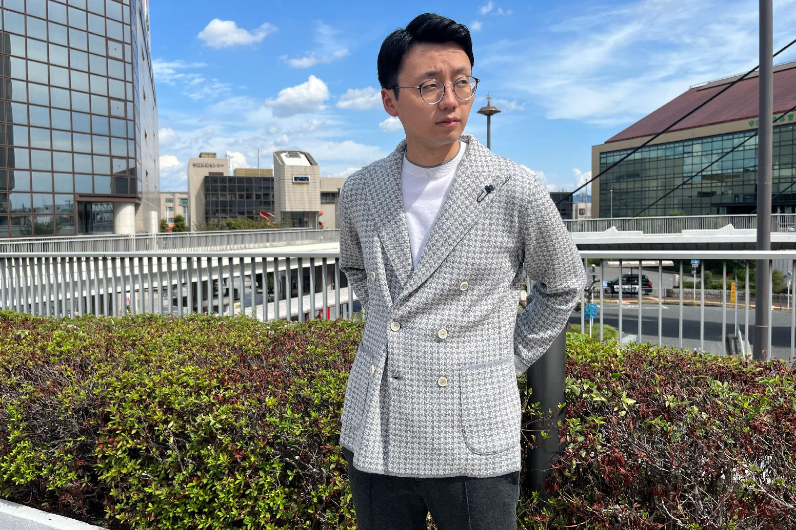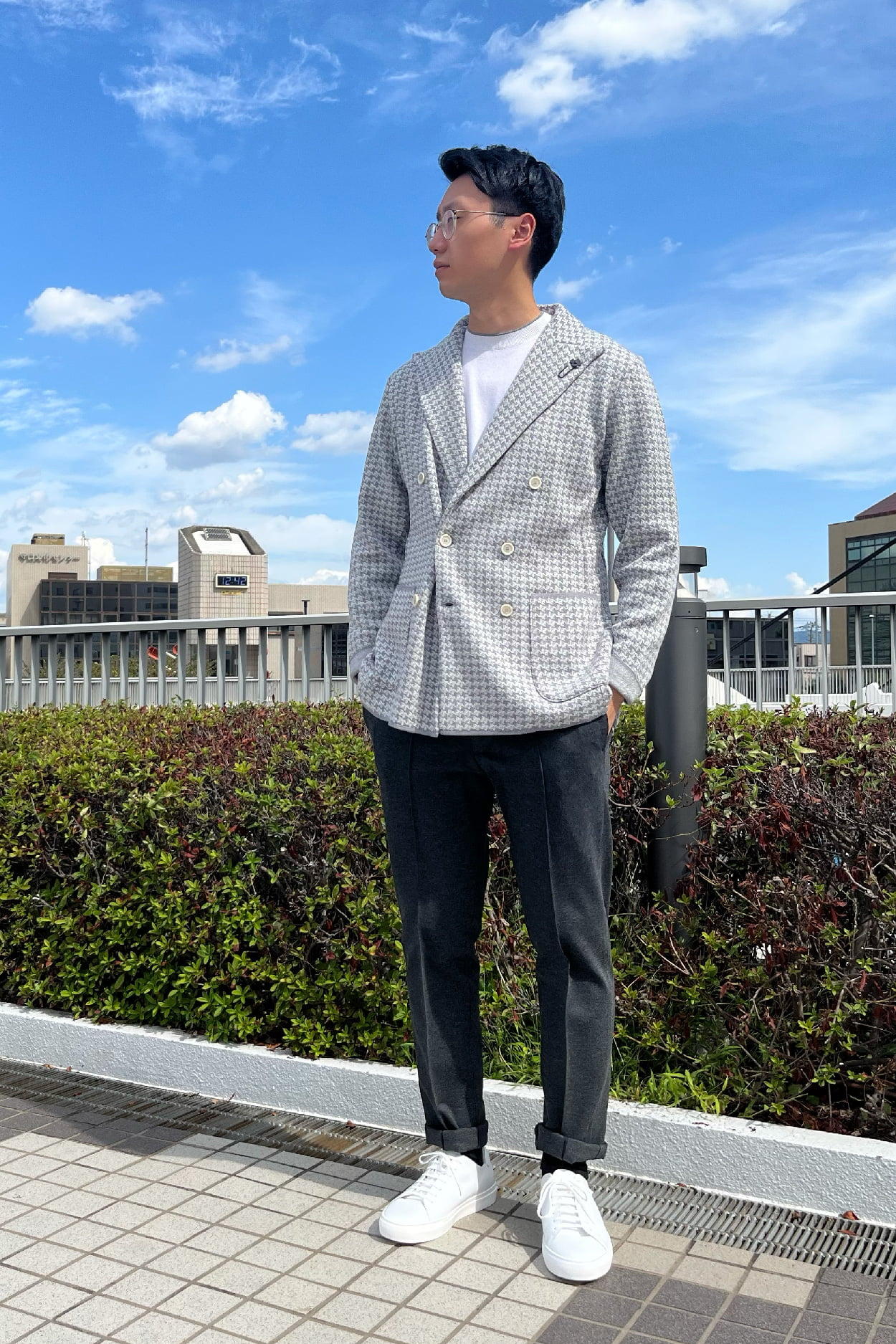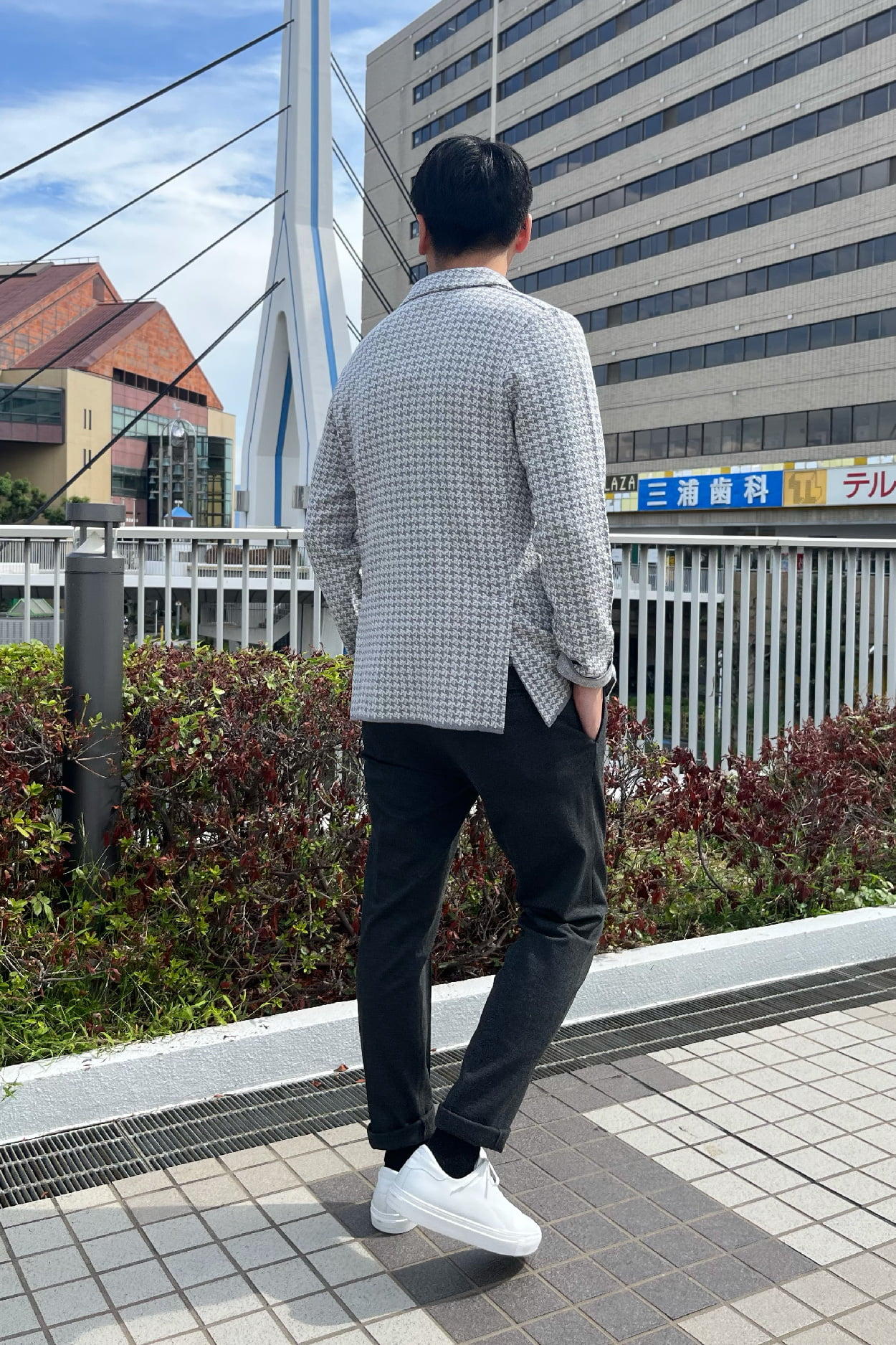 - きちんとした感じも表現しつつ、肩肘張りすぎない。軽く動きやすい機能性、シワなど気にせずに使える利便性も備えたニットジャケット。これからの時期に重宝されるアイテムです。グレー×ホワイトのコーディネートは大人の上品さを醸し出します。