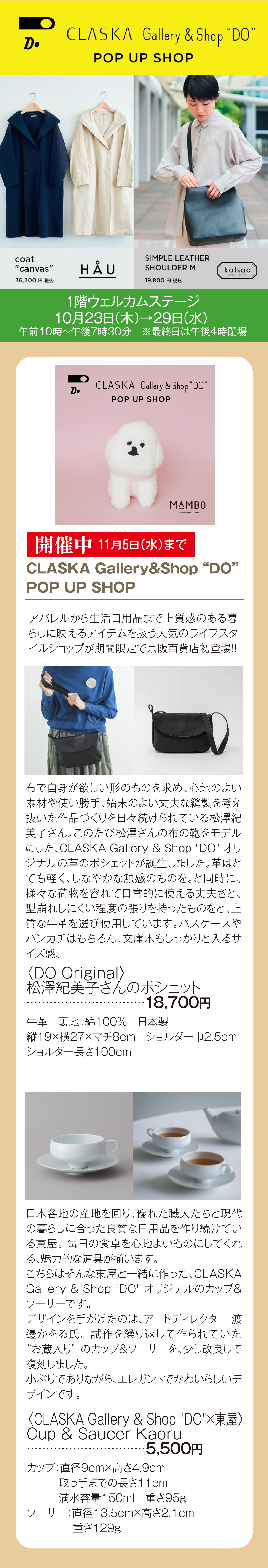 1階ウェルカムステージ CLASKA Gallery&Shop "DO"POP UP SHOP/くらしのこみち
