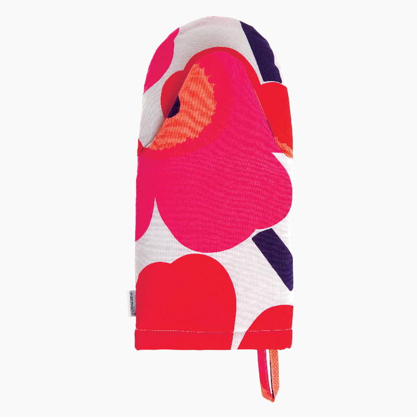 …………………… (税込)4,950円 - Marimekkoを象徴する、花を表現したUnikko柄テキスタイルのオーブンミトン。熱い鍋やオーブン料理の持ち運びに欠かせず、ループ付きで壁掛けも可能です。美しい色柄は料理の時間を華やかに演出したり、ホームパーティでも注目を集めそう。料理好きな友人へのギフトや引っ越し祝いとしてもオススメです。