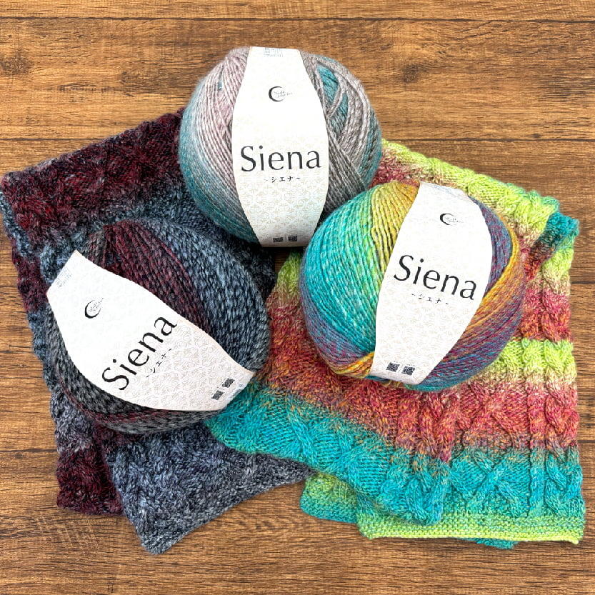 - アクリルとウールの混紡で、ふんわりと柔らかく触り心地で、暖かい毛糸です。落ち着いた優しい色合いのロンググラデーション毛糸で、とても大きなサイズ!ひと玉でマフラーやショール・ベストなどが編めるサイズです。(ユザワヤオリジナルのデザインレシピをお渡しできます。)