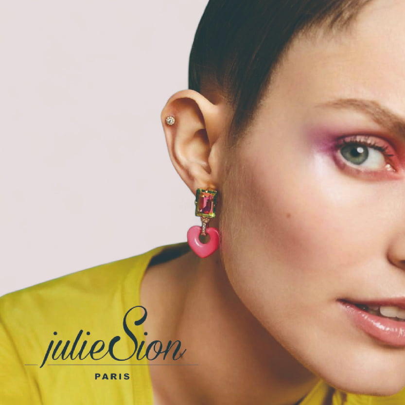 - パリの装飾美術からインスパイアを受けてデザインされるブランドJULIE SION “。ヨーロッパ各地で注目されるデザインはカラフルでコーディネートを華やかな印象にします。プレゼントにもおすすめのアイテムです。