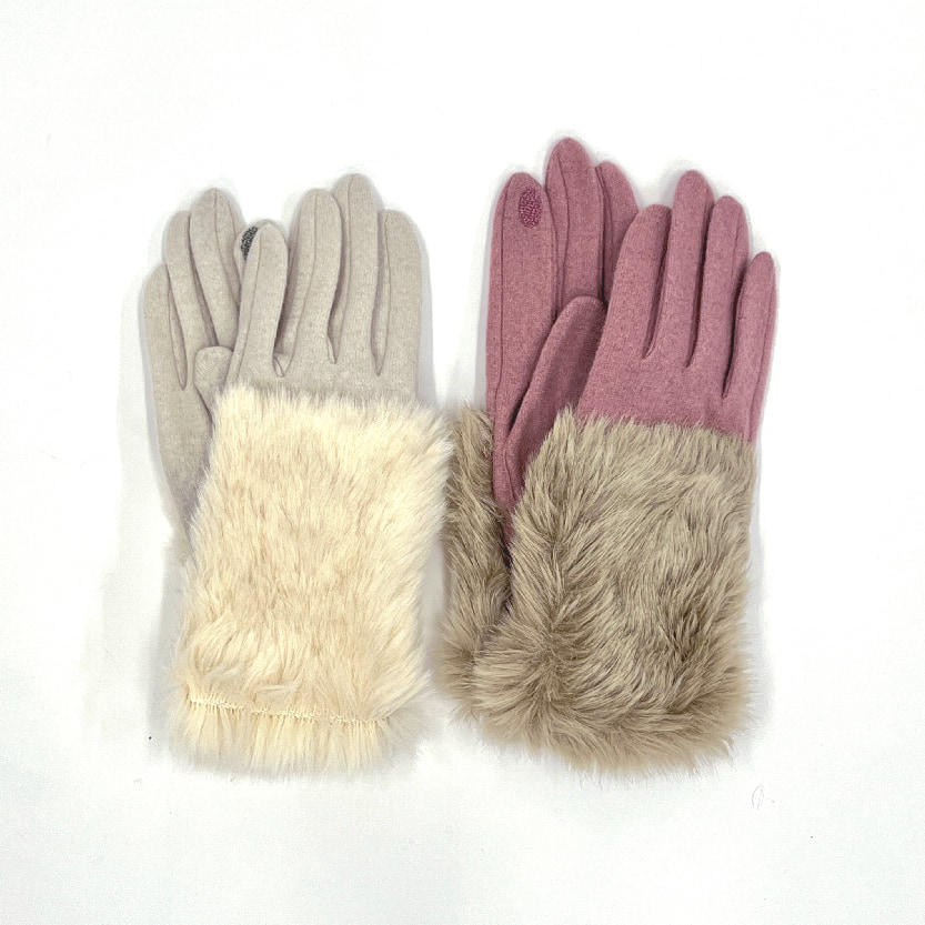 ……………… (税込)6,600円 - 手の甲にフェイクファーをあしらった、ニュアンスカラーがアクセントになる、見た目もあたたかさを感じる日本製グローブ。