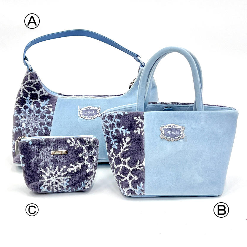 …………………… (税込)3,190円 - 肌触りの良いシェニール織シリーズから、冬の結晶をモチーフにしたバッグや小物をご用意しております。