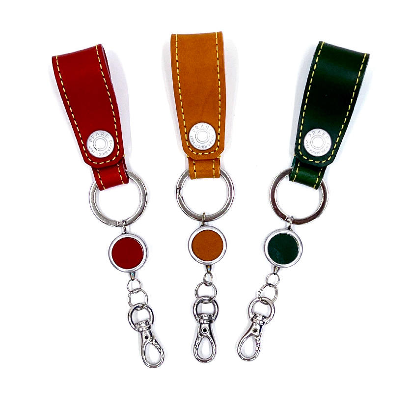 …………………… (税込)各4,400円 - 家や車の鍵などまとめてつけられるキーホルダー。7色展開で好きな色が見つかる、革の経年変化も楽しめるプレゼントにぴったりな一品です。