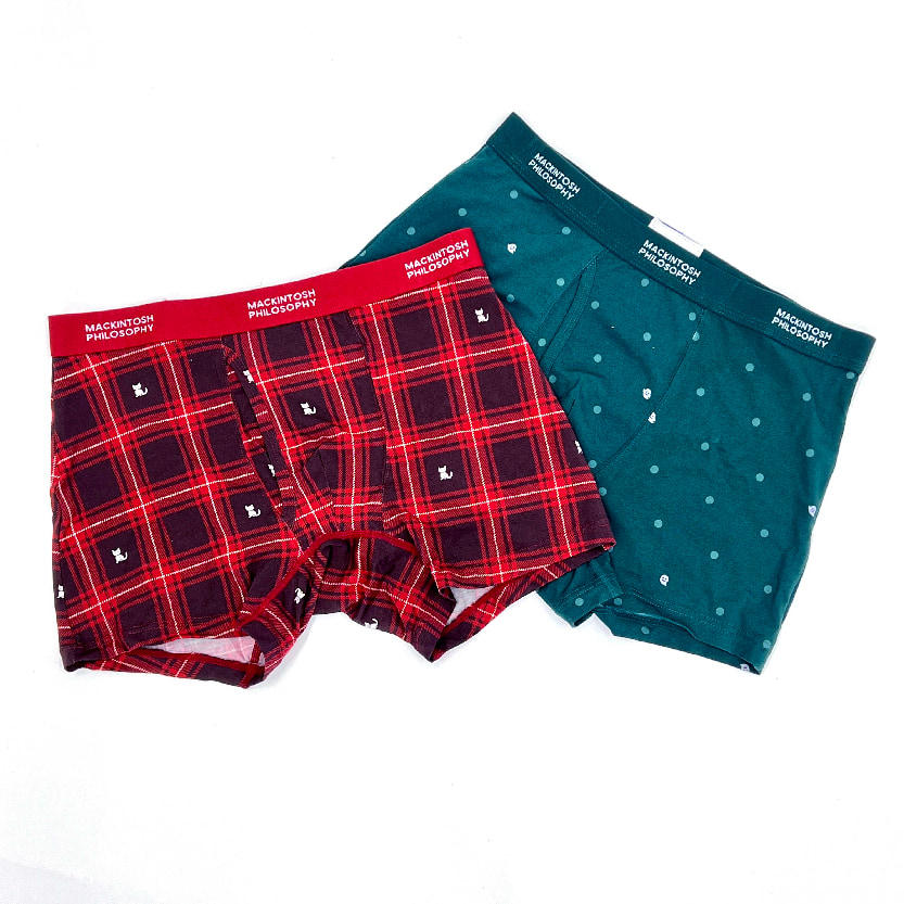 …………………… (税込)各3,960円 - 動物柄がかわいいクリスマスカラーのボクサーパンツ。レーヨンと綿の素材なので、汗をかいても張り付きにくく快適な履き心地。