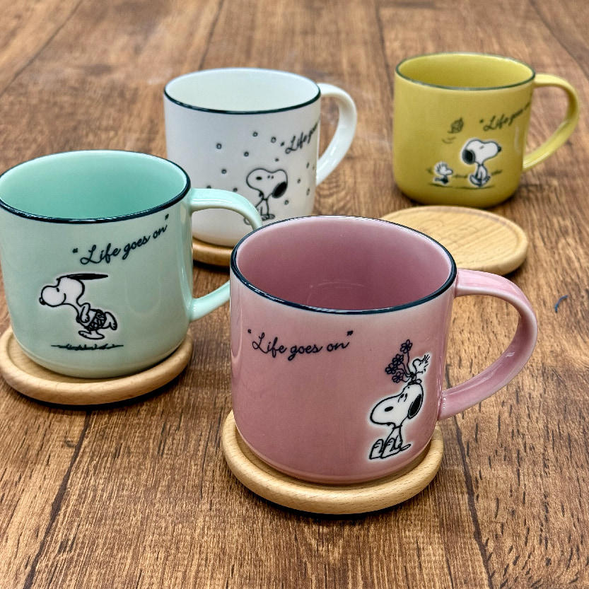 世界中で愛されるスヌーピーの食器シリーズ!大切な方へのクリスマスギフトにもおすすめです。 - 木製コースター付の落ち着いた色合いのマグカップ。コースターの部分をフタとしてもご利用できます。大人が使いたくなるおしゃれなデザインのマグカップと、木製コースターのセット。四季を表しているようなデザインが愛らしく、集めたくなる可愛さです。ティータイムや休憩時間、愛らしいスヌーピーたちとほっと一息いれては。