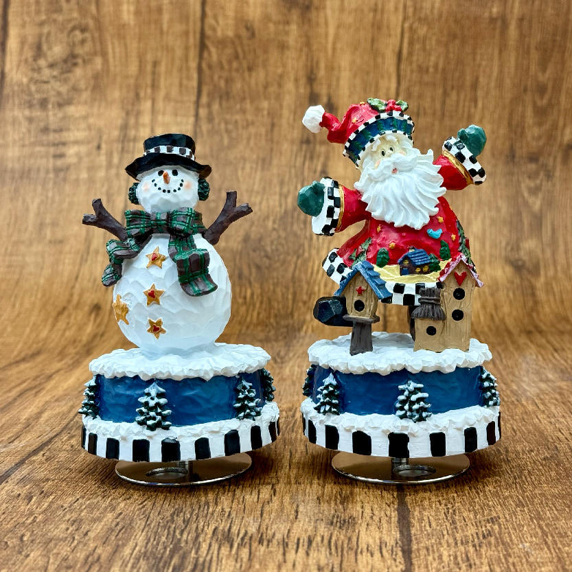 サイズ:W130×D125×H192㎜ 曲名:ジングルベル - クリスマスと言えば、サンタクロース&スノーマン!クリスマスプレゼントとしてピッタリのオルゴールです。底面の巻き鍵を回すとオルゴールの音色とともに可愛くデザインされたサンタクロースやスノーマンが回転します♪