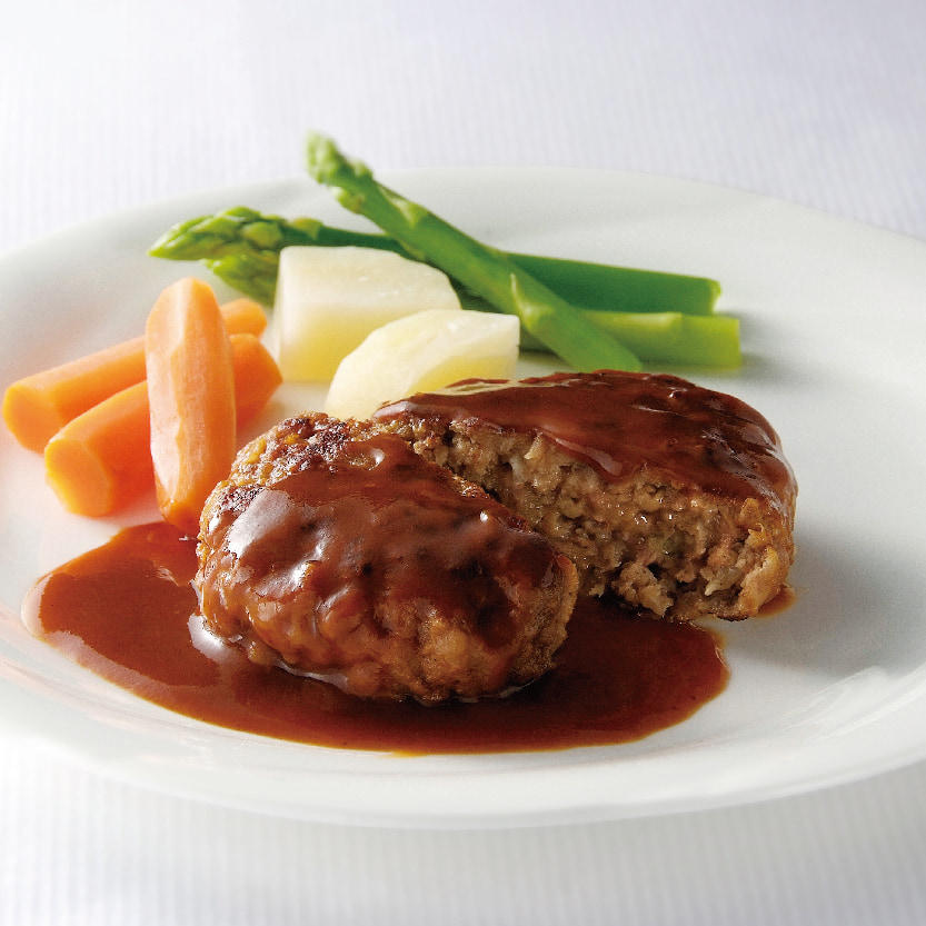 …………………… (税込)832円 - 粗挽きでふっくらジューシーで、デミグラスをベースにしたオリジナルソースがよくあいます。