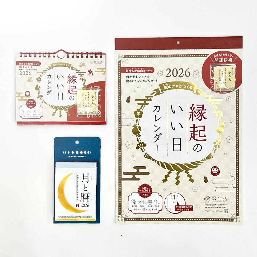 …………………… (税込)1,210円 - WEBサイトやSNSで二十四節気や季節の暮らしについて発信する「暦生活」の作るカレンダーは、日本の四季や季節の行事について感じながらお使いいただけるのが特長。月齢や吉日情報も満載のカレンダーで、日々の暮らしを豊かにしませんか?