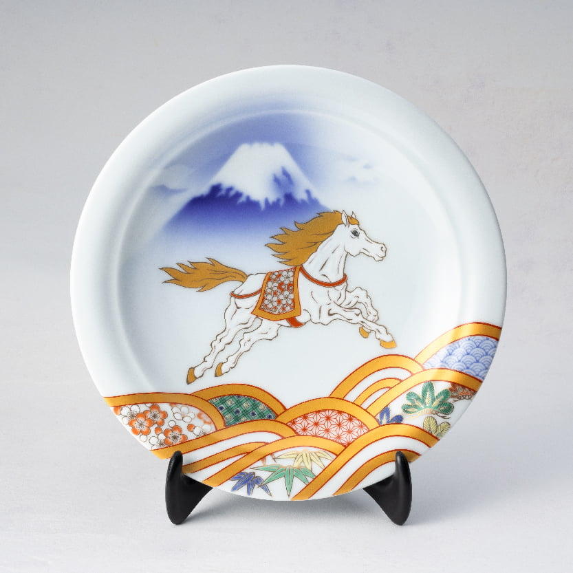 - 『午』天翔る白馬に吉祥波 縁起皿(皿立付き)