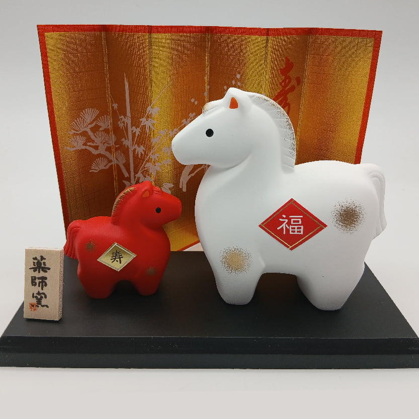 - 古来より午は生後すぐに走り出すことから、立身出世や幸運を招く動物として人々から尊ばれてきました。どんな道でも恐れずに駆け抜ける姿は、苦難を乗り越える力強さを感じさせ、発展と向上の1年となるようにとの願いが込められています。