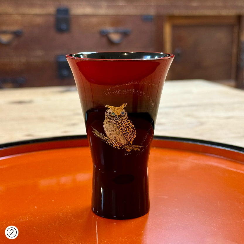 ②ぐい呑み 曙フクロウ沈金