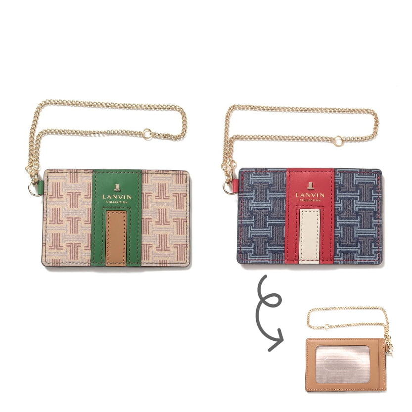 ……………………………… (税込)5,500円 - ブランドマークをモノグラム調にデザインした、エレガントなムードが漂うチェーン付きパスケース。上品なレザーの配色が、新成人の通学や通勤に美しいアクセントを添えてくれます。