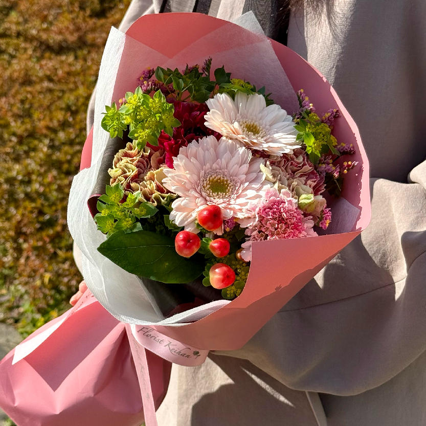 優しくかわいらしいピンクのお花はどなたにも喜ばれる人気カラー。