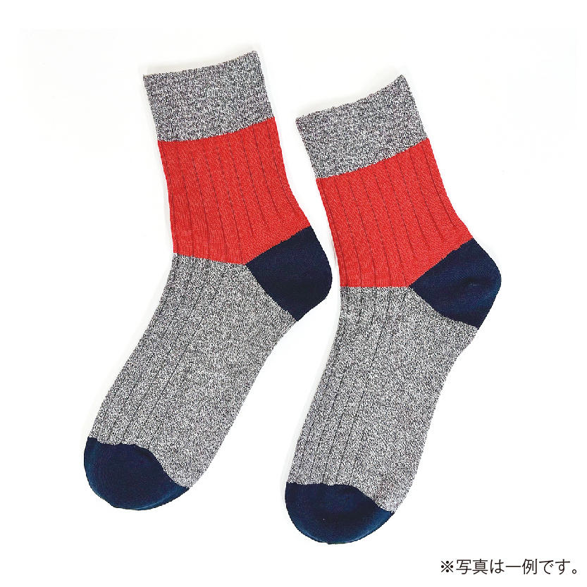 色の組み合わせの妙を楽しむリブ編みの配色コンビソックス。