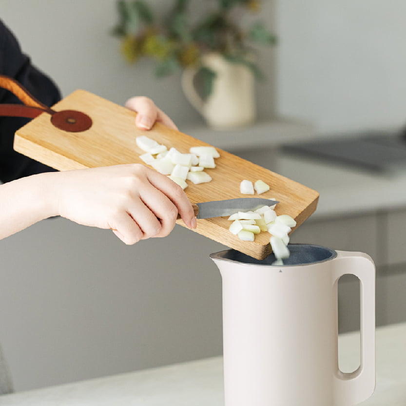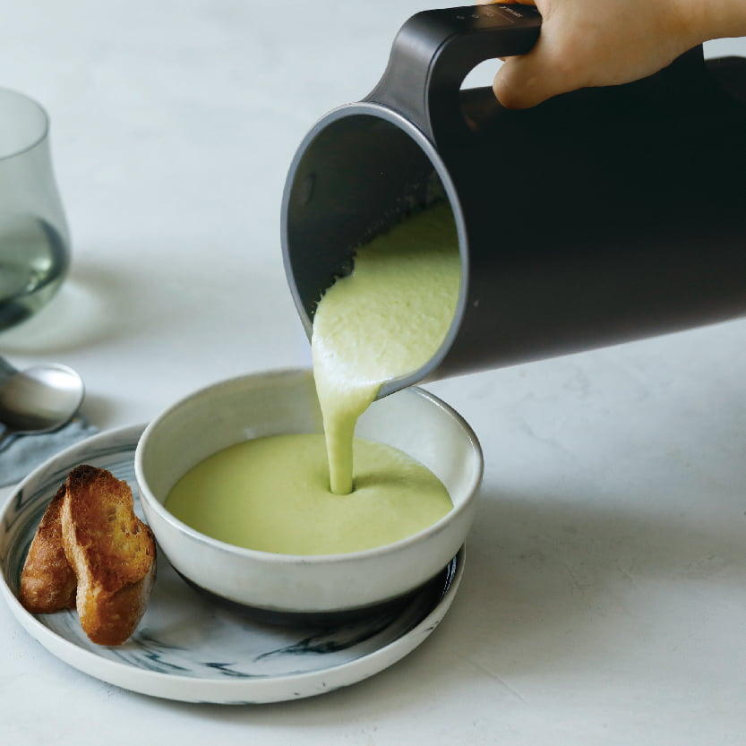 スリムなポット型の自動調理器。5種類の調理モードに合わせ、攪拌の速度や時間、加熱温度をコントロールし、なめらかなポタージュやおかゆ、豆乳など、手間なく簡単に作れます。家庭用の氷も砕け、スムージーなどの冷たいメニューもOK!保温もできます。 - ●お取扱い売場:5階 台所用品売場 ▶︎