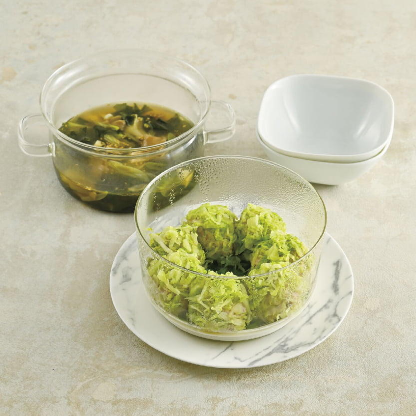 ・蒸し器としても活躍します。少量の水をかけてレンジ加熱すれば、シュウマイはしっとりふっくらとした仕上がりに。お弁当など、少しだけ蒸し野菜を作りたい時にもおすすめです。※加熱時間は、食材の様子を見ながら調節してください。 - ●お取扱い売場:5階 台所用品売場 ▶︎