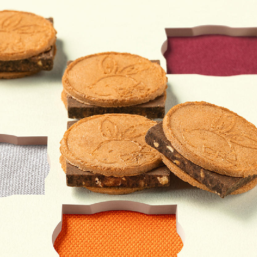 …………… (税込)800円 - 香ばしいビスケットをざくざく盛りこんだ厚切りショコラ。満月になった「半月」の生地ではさみました。