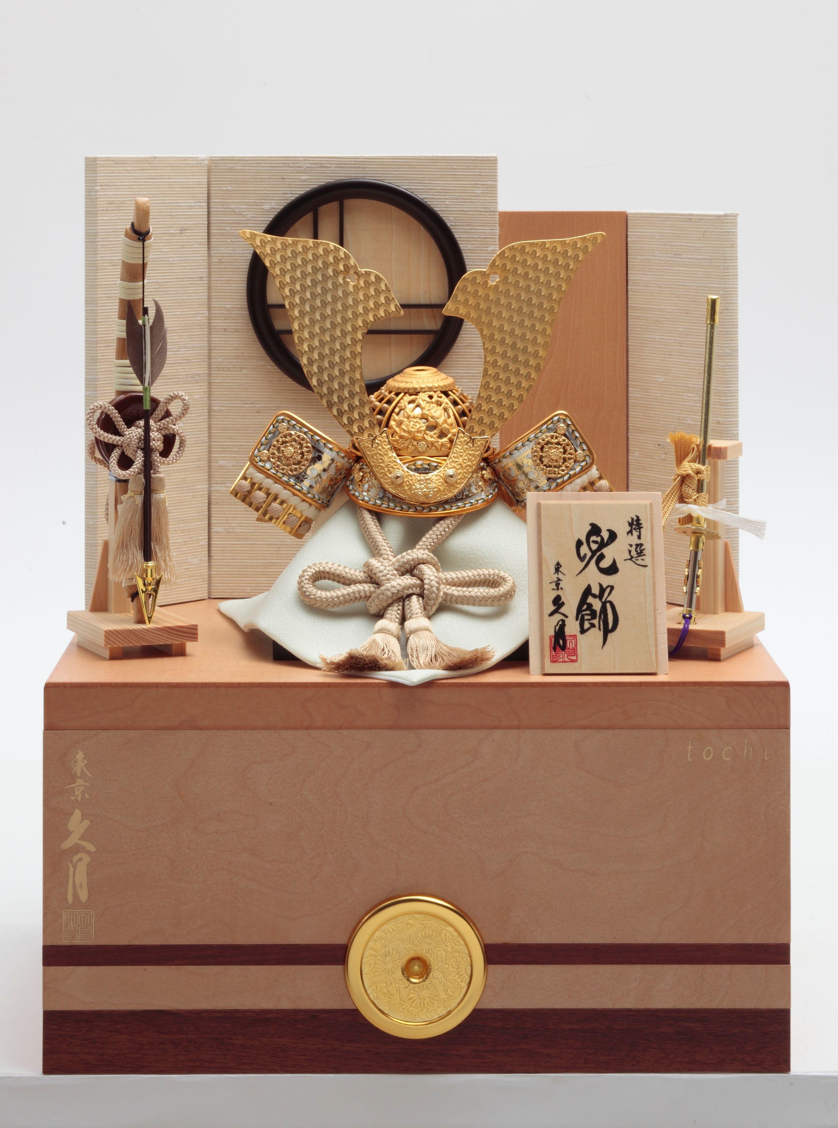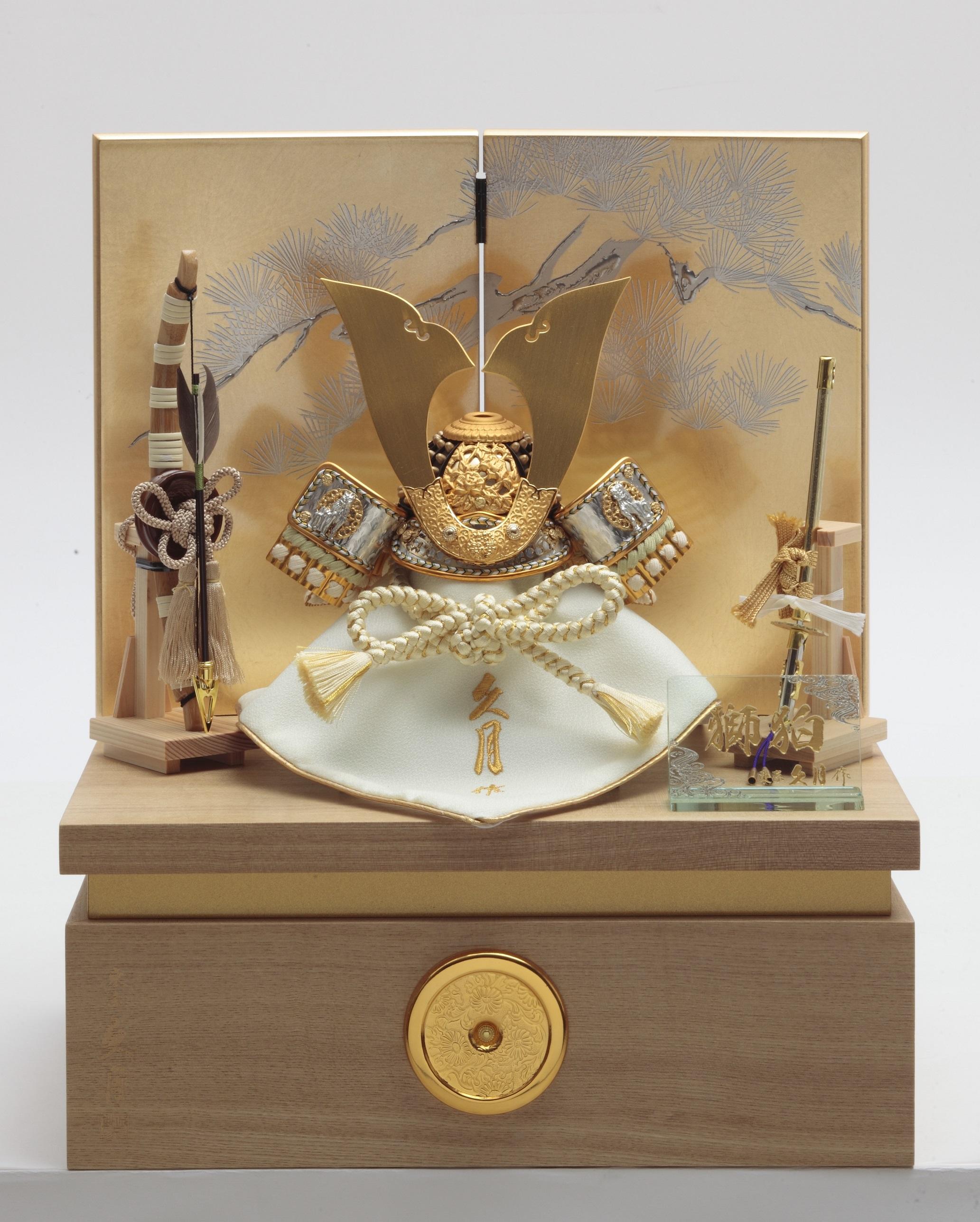 久月の定番シリーズ『獅狛(しはく)』の、 コンパクトに飾れ明るい雰囲気の兜収納飾りです。