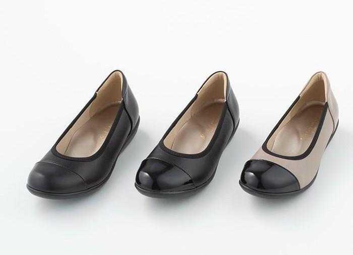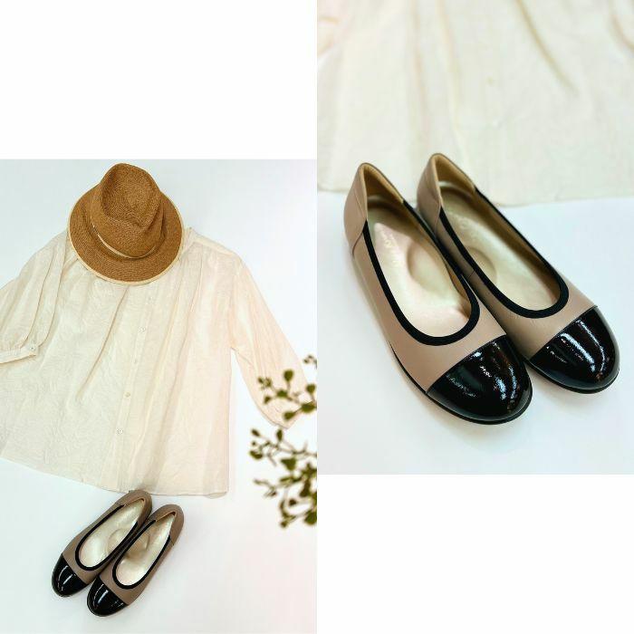 エナメルコンビフラットシューズ