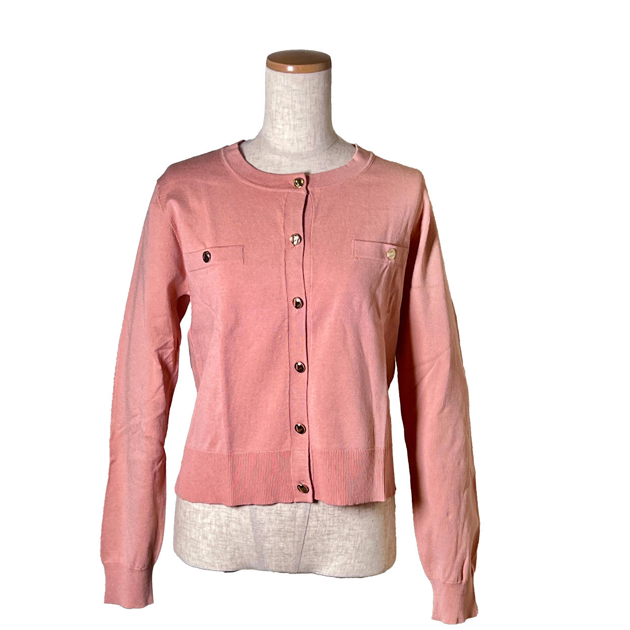 - ジャケットライクにも活躍する洗練されたボクシーカーディガン。フロントポケットがアクセント。ゴールド調のボタンが華やかさをプラス。マシンウォッシュ仕様でデイリー使いにぴったり♪