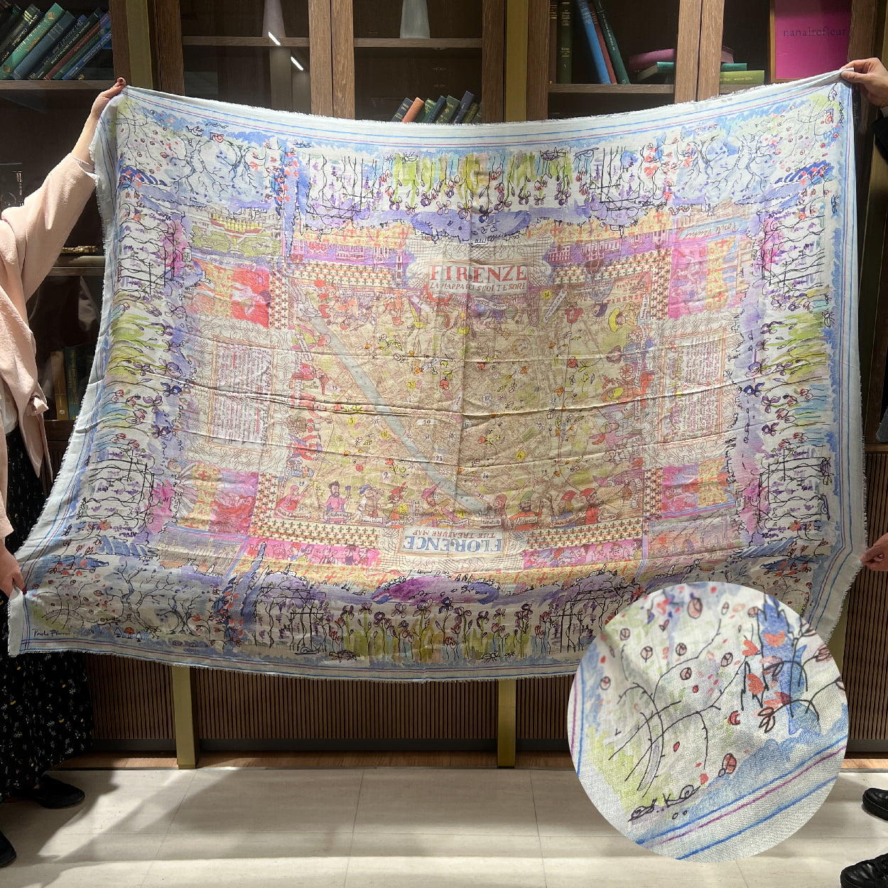 - フィレンツェを明るく淡い色合いでオマージュしたストール。シルクが入った柔らかな素材と明るいカラーがコーデに春を添えてくれます。
