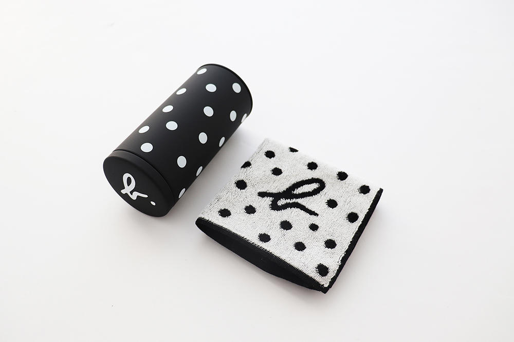 円柱缶パッケージ入りタオル(ドット) 1,980円