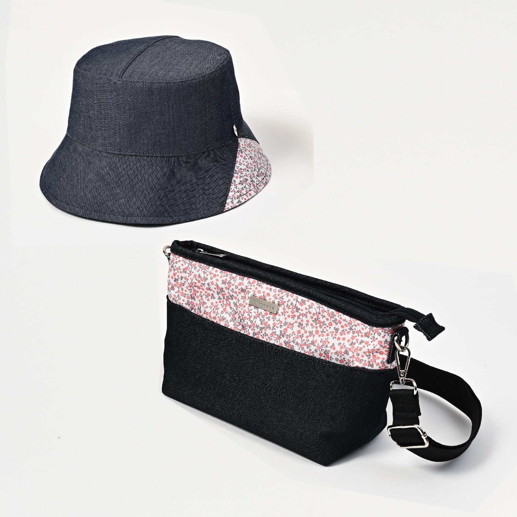 …………… (税込)6,600円 - デニム風の落ち着いた本体生地に花柄プリントをアクセントに使用したショルダーバッグです。デイリーからお出かけに幅広く使っていただけます同じ花柄プリントを使った帽子をセットで母の日ギフトに好適品です。