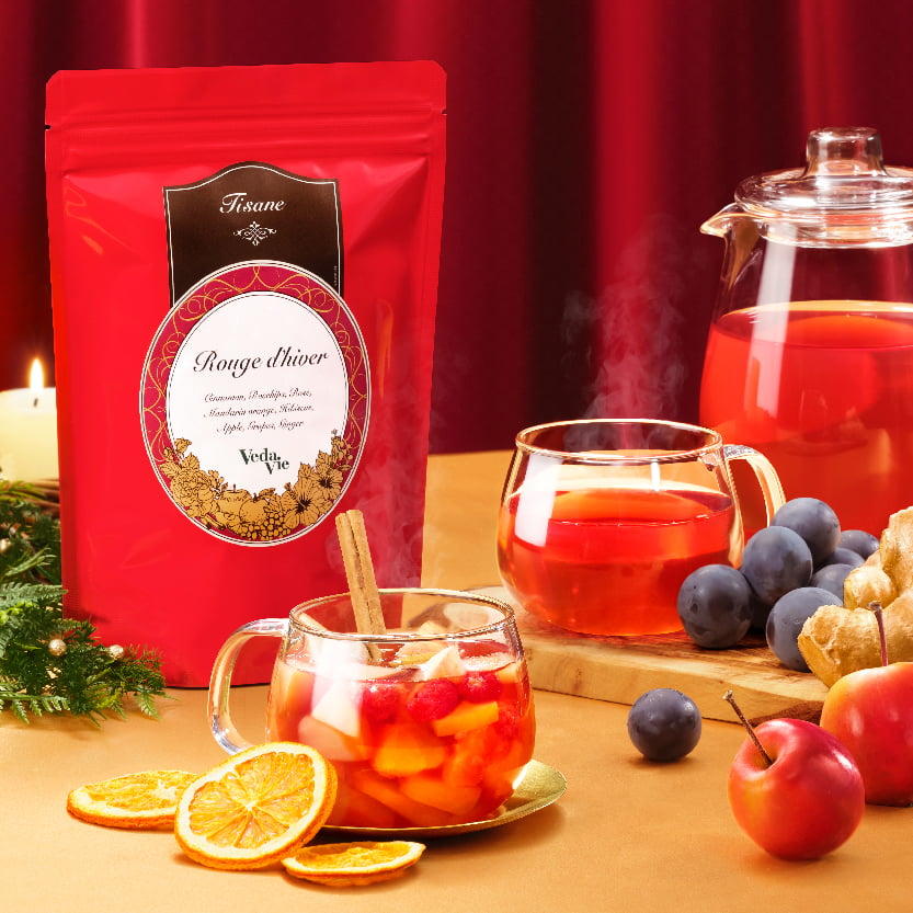 …………………………… (税込)4,860円 - リンゴとマンダリンオレンジの甘い香りに、スパイシーでまろやかな酸味と甘みのあるハーブをプラスしたアロマティックルビーレッドのブレンドティ。お好みでハチミツやフルーツを添えてノンアルコールワイン風にも楽しめます。