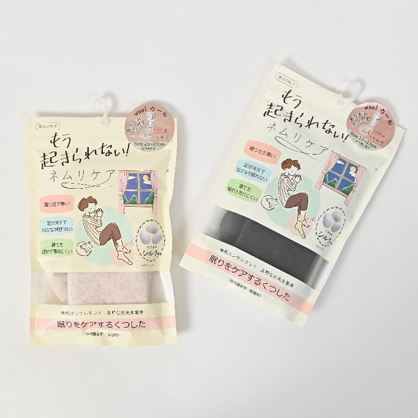 …………………… (税込)各1,870円 - 足首を温め深部体温を下げることでよく眠れる、眠りのための靴下。かかと下の刺繍がツボを刺激し、快適な眠りをサポート。